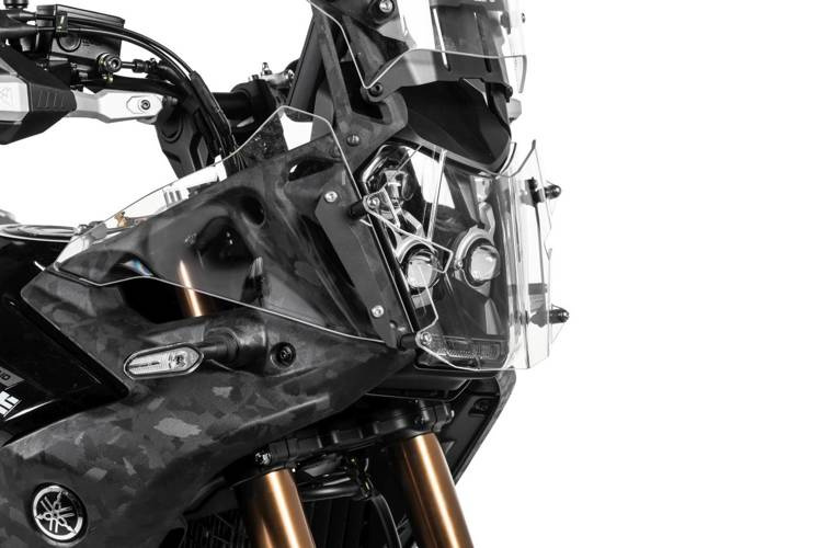 Our headlight protector has been thoroughly tried and tested over the years – we’ve sold thousands. Even the biggest stones won’t be able to damage your headlight with this!This durable makrolon model comes with quick release fastener!So you can clip on the headlight protector and detach it again as needed. Just bolt the sturdy and secure side struts to the motorcycle.The makrolon pane is shatter-proof and virtually indestructible!And of course the protector comes with everything you need to fit it. The headlight protector has been developed for off-road use and is not permitted in the scope of German StVO. Please check your national regulations!