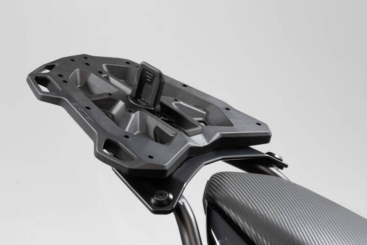 Jednym prostym ruchem, płytę adaptacyjną można połączyć z dowolnym STREET-RACK’iem. Nie są do tego potrzebne żadne narzędzia! Płyta adaptera jest wsuwana na stelaż i bezpiecznie blokowana za pomocą obrotowego zatrzasku. Po zakończeniu jazdy, płytę adaptera można zdemontować w ciągu kilku sekund, a wówczas stelaż bez jakichkolwiek uchwytów pozostaje na motocyklu. Płyta adaptacyjna ma również dużą i płaską powierzchnię styku oraz sześć dużych otworów, które mogą służyć jako element mocujący. Do płyty dołączone są odpowiednie zestawy uchwytów, aby przymocować kufer centralny taki jak Givi / Kappa zMonokey.