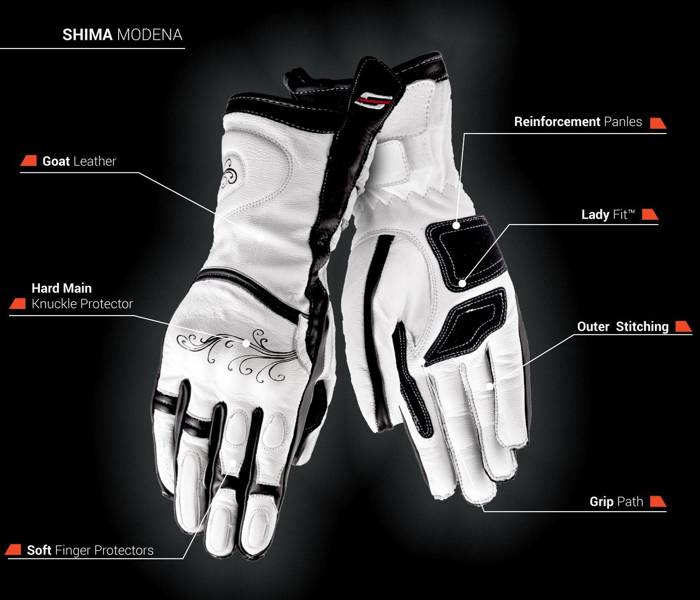 Modena wyjątkowo wygodna rękawica dla pań, wykonana z najwyższej jakości anilinowej skóry bydlęcej. Piankowe absorbery i syntetyczny protektor zaszyty pod skórą gwarantują bezpieczeństwo, zachowując przy tym estetyczny wygląd i smukłą linię. Kobiecy charakter podkreślają również subtelne aplikacje graficzne. Po wewnętrznej stronie dłoni zostały użyte zewnętrzne szwy dla poprawy komfortu użytkowania, dodatkowo uzupełniona o antypoślizgowe elementy z zamszu. Specjalna konstrukcja damskich modeli rękawic SHIMA uwzględnia anatomię kobiecej dłoni.