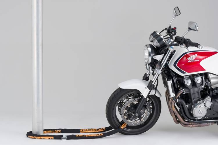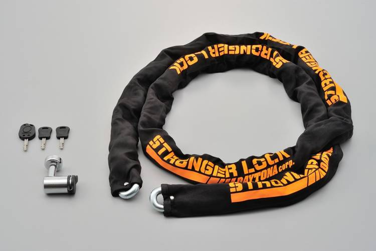 Chain lock "STRONGER LOCK" made of alloyed steel with an outer diameter of 12mm and a length of 2.5 meters. The lock unit can be used as disc-lock. Includes: 2.5m Chain, Lock unit, 3 Keys (1 with LED Lamp) Weight: 7.1 kg
