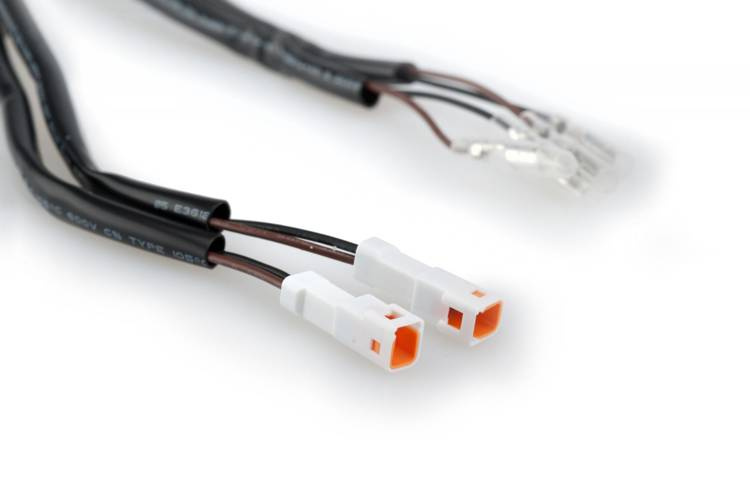 Zestaw umożliwia podłączenie jednego kompletu (2 szt., na przód lub tył) kierunków do kostki motocykla bez konieczności ingerencji w instalację elektryczną.
