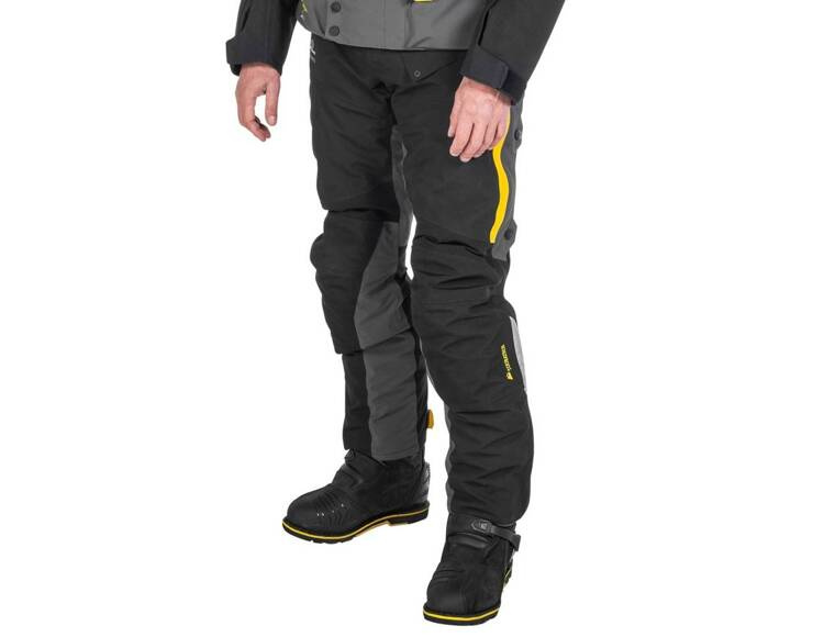 Wyjątkowo długie zamki błyskawiczne po zewnętrznej stronie spodni ułatwiają ich zakładanie i zdejmowanie nawet w butach. Dwukierunkowy zamek błyskawiczny jest również przydatny do sięgania do kieszeni spodni letnich. Dodatkowa ochrona membranowa na zewnętrznej i wewnętrznej stronie nogawki spodni chroni wysokiej jakości materiały przed brzydkimi śladami otarć od ramy motocykla i klamer butów.