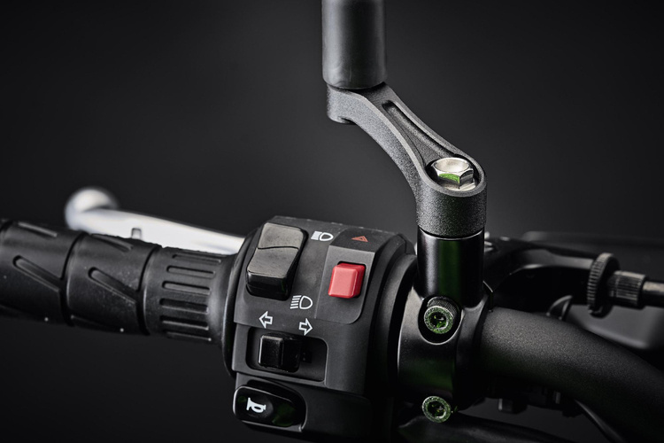 Evotech's M10 mirror adaptor brackets are simple to fit between your stock mirror and the original mounting post.