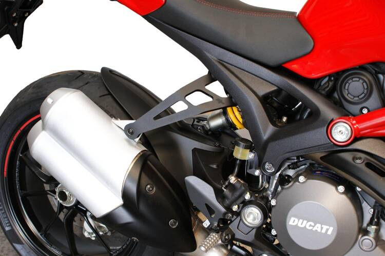 Evotech Performance have manufactured an exhaust hanger blanking plate kit that is a direct replacement for both OEM pillion pegs.
