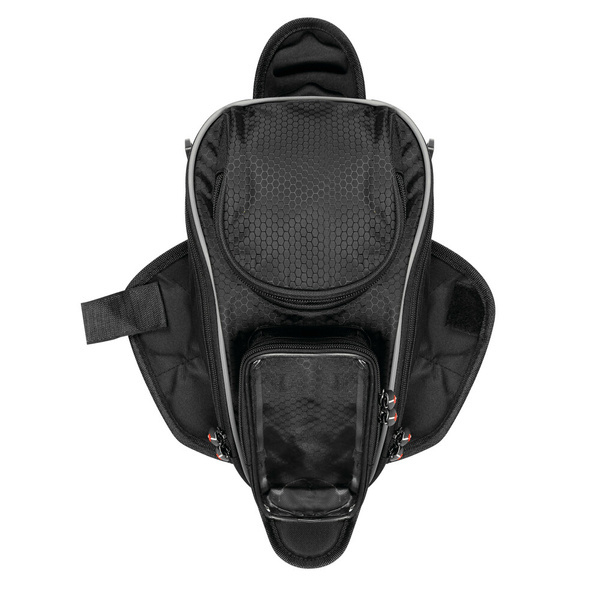 Poliester, odblaskowe elementy. Pojemność 5l, 3 praktyczne kieszenie. Osłona przeciwdeszczowa.