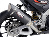 Spoiny wykonane metodą T.I.G. technologii w chronionym środowisku, dźwiękochłonny materiał odporny na bardzo wysokie temperatury oraz tuleje wkładki wykonane w obróbce CNC, zdobią tłumik SC1-R. System zaworów jest kompatybilny z oryginalną jednostką sterującą i okablowaniem, dzięki czemu instalacja jest typu plug-and-play. Nie jest konieczne żadne ponowne mapowanie ECU. Zestaw zawiera specyficzną osłonę termiczną z włókna węglowego i wspornik wyścigowy do demontażu podnóżka pasażera, a także wspomniany zawór wydechowy z tytanu – pochodzący z zespołów fabrycznych MotoGP – oraz w pełni tytanową rurę łączącą.