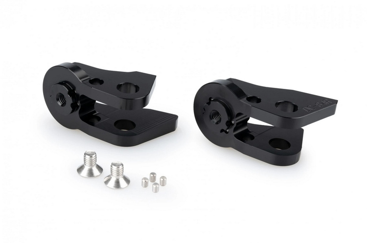 Komplet mocowań podnóżków na lewą i prawą stronę kierowcy. Wersja do zastosowania z dystansem relokującym 20 mm. Dystans i same podnóżki należy dokupić osobno.