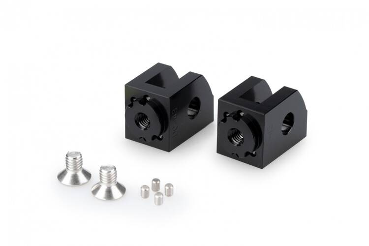 Komplet mocowań podnóżków na lewą i prawą stronę kierowcy. Wersja do zastosowania z dystansem relokującym 20 mm. Dystans i same podnóżki należy dokupić osobno.