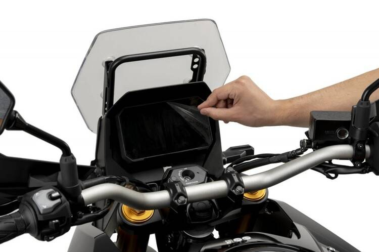 Osłona chroni wyświetlacz motocykla przed zarysowaniami.