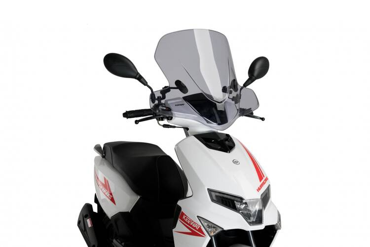 Owiewka PUIG City Touring - dodatkowo podwyższona względem serii City Sport. Jeszcze lepsza ochrona przed wiatrem, deszczem i zimnem. W zestawie komplet potrzebnych mocowań dedykowanych do danego modelu skutera. Wysoka jakość wykonania, bardzo odporna na zarysowania. Prosty montaż. Owiewki serii PUIG City Touring posiadają niemiecki atest TUV. ZastosowanieKEEWAY HURRICANE 50 2021-2023
