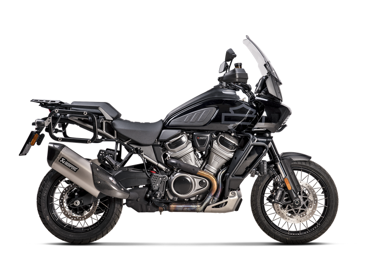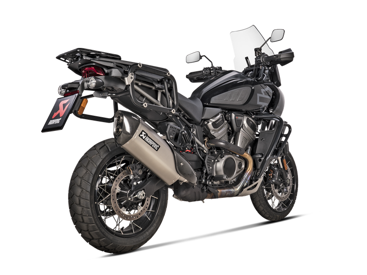 Stworzony tak, aby idealnie pasował do linii motocykla i wykorzystując konstrukcję stosowaną w produktach Akrapovič dla sektora motocykli adventure, ten bardzo trwały układ wydechowy ma piaskowaną, wysokiej jakości poszycie tytanowe zewnętrzne z rurą łączącą ze stali nierdzewnej. Ręcznie wykonana zaślepka i osłona termiczna z włókna węglowego idealnie dopasowują się do profilu tłumika. Dzięki zmniejszeniu masy o 11,6% (0,5 kg) w stosunku do seryjnego systemu, system ten oferuje głęboki i pełny dźwięk V-twin . Wydajność poprawia wzrost mocy o 1,3 kW (1,7 KM) przy 2300 obr./min i wzrost poziomu momentu obrotowego o 5,6 Nm przy 2700 obr./min w testach na własnej hamowni Akrapovič w porównaniu z Pan America 1250 ze standardowym wydechem. Ten układ wydechowy z homologacją EC/ECE jest również zgodny z najnowszymi normami Euro 5 i nie wymaga ponownego mapowania w ECU dzięki prostej instalacji typu plug-and-play .