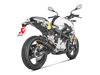 , z kolektory ze stali nierdzewnej i wykończony ręcznie wykonaną nasadką końcową z włókna węglowego i zaciskiem tłumika, wszystko to zapewnia większą oszczędność masy w porównaniu z systemem podstawowym. System zapewnia