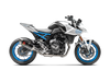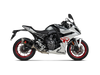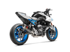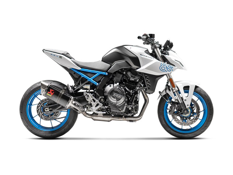 Jest to całkowicie nowy układ wydechowy zaprojektowany od podstaw i skonstruowany przy użyciu lekkich, sprawdzonych w wyścigach materiałów . Zewnętrzna tuleja , osłona termiczna i zacisk tłumika z włókna węglowego , tytanowa zaślepka, kolektor, rezonator i rura łącząca ze stali nierdzewnej oraz aluminiowy wspornik tłumika powlekany na czarno zapewniają oszczędność masy o 39,6% (3,2 kg) w porównaniu z modelem fabryczny wydech. Alternatywne poprowadzenie wydechu umieszcza go po prawej stronie maszyny (wersja standardowa znajduje się pod motocyklem), co nadaje mu bardziej wyścigowy styl, a osłona termiczna z włókna węglowego zapewnia ochronę przed gorącem i atrakcyjny wygląd końcowy. Oferuje wzrost mocy i momentu obrotowego odpowiednio o 4,7 kW (6,4 KM) przy 9200 obr./min i 4,7 Nm przy 7650 obr./min w testach na hamowni Akrapovič w porównaniu z Suzuki GSX-8S wyposażonym w standardowy układ.