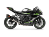 Produkt ten jest wykonany z ręcznie układanego włókna węglowego na zewnętrzną tuleję i zaślepkę tłumika, z wewnętrzną konstrukcją z wysokiej jakości stali nierdzewnej, wkładką dźwiękochłonną, rurą łączącą i kolektorami, co daje w rezultacie wydech dostosowany do użytku na torze wyścigowym, który jest 66,1% (7,4 kg) lżejszy niż standardowa wersja. Maksymalną wydajność uzyskuje się dzięki innej konfiguracji wydechu, co zapewnia wzrost wydajności w całym zakresie obrotów powyżej 5000 obr./min. Zarejestrowano wzrost mocy i momentu obrotowego odpowiednio o 7,2 kW (9,8 KM) przy 14 600 obr./min i 5,0 Nm przy 6400 obr./min w porównaniu do Kawasaki Ninja ZX-6R wyposażonego w standardowy fabryczny wydech i przetestowanego na hamowni Akrapovič. Wyścigowy wygląd zawdzięcza usunięciu tłumika wstępnego; wydech ma dwie sondy lambda, które temu przeciwdziałają. Dźwięk wydechu ma unikalny, głęboki dźwięk wyścigowy , a system jest instalacją typu plug-and-play, która nie wymaga obowiązkowego ponownego mapowania, ale jest to zalecane, aby uzyskać pełne wrażenia.