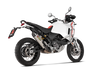 Zewnętrzne poszycie tłumika wykonana jest z wysokiej jakości tytanu , z rurą łączącą ze stali nierdzewnej i wewnętrzną strukturą tłumika. Wykończony zakończeniem z włókna węglowego i osłoną termiczną, ten wydech zmniejsza masę o 33,4% (1,1 kg). Nowy projekt zapewnia dużą trwałość i personalizację motocykla. Dzięki całkowicie zaprojektowanej od podstaw osłonie termicznej pakiet zapewnia ochronę pasażera i sprzętu, zapewniając jednocześnie niepowtarzalny wygląd.