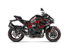 Linie systemu idealnie wpasowują się w profil motocykla, a tłumik wydaje się mniejszy na pierwszy rzut oka – pozornie sprzeczny z rygorystycznymi zasadami homologacji typu, ponieważ tłumiki stają się coraz większe – w pełni demonstrując postęp w konstrukcji. System posiada homologację typu EC/ECE . Uroku dodaje mu powlekany na czarno tłumik z wygrawerowanym logo, tytanowa tuleja zewnętrzna i części z włókna węglowego . Dzięki mocy zoptymalizowanej pod kątem maszyny, doskonałemu wykonaniu, wysokiej jakości wykończeniu i ponad 40 % oszczędności na masie , jest to zarówno dzieło sztuki, jak i część zapewniająca wydajność .