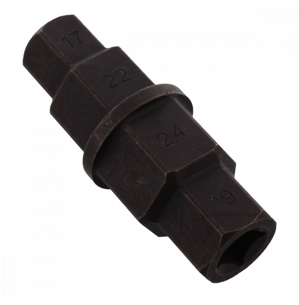Nasadka imbusowa w 4 rozmiarach (17, 19, 22 i 24 mm) służy do demontażu przedniej osi w motocyklach.