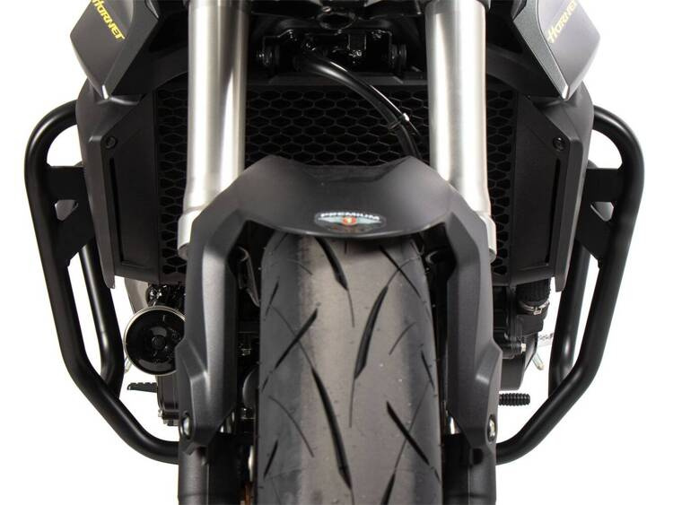 Ideal for extreme terrain: the engine protection bar Solid, which stands out due to its 3-point connection to the motorcycle frame and additional stiffening plates at the lower node. Optimal distribution of forces in the event of an overturn or fall. Close-fitting and sporty design with the best possible force dissipation into existing frame points. The innovative design with the high-strength plastic coating is unmistakable. With the function clearly in focus, it becomes clear: this tank guard was developed for tough, uncompromising use in difficult terrain.