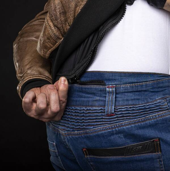 Elastyczne dzianiny na rękawach i w talii zapewniają wygodę noszenia i chronią motocyklistę przed wiatrem. Kurtkę można łączyć z dżinsami kevlarowymi i skórzanymi spodniami motocyklowymi za pomocą krótkiego lub długiego zamka obwodowego. Dostępnych jest łącznie sześć kieszeni na niezbędne drobiazgi – trzy zewnętrzne i trzy wewnętrzne. Wszystkie zewnętrzne kieszenie można zamknąć zamkiem błyskawicznym YKK w wykończeniu Gun Metal.