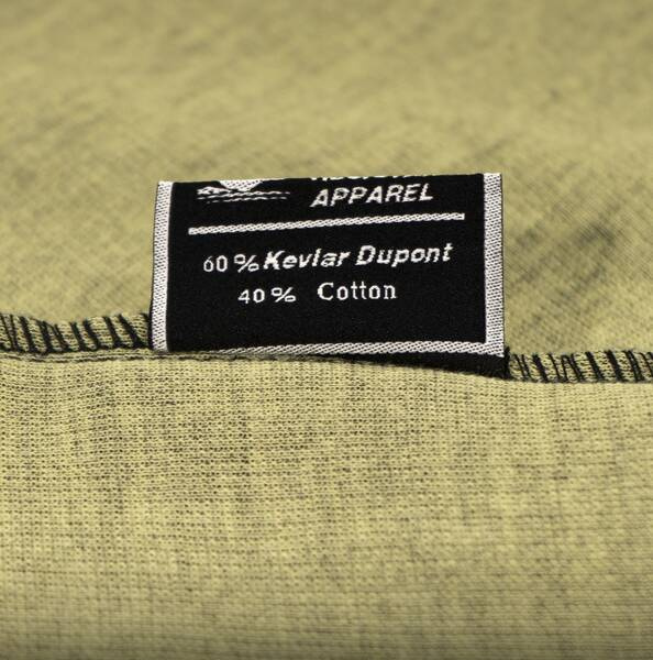 Zbadaliśmy odporność materiału na ścieranie w niemieckim centrum certyfikującym TÜV Rheinland, gdzie bez żadnych problemów przeszedł on test ścieralności EN 17092-4 poziom A (45 km/h). Dzięki swojemu składowi Kevlar zapewnia silną barierę ochronną przed przetarciami, przecięciami i przebiciami. Jest naturalnie ognioodporny do 426,6°C. Ponadto włókna kevlarowe nie topią się ani nie podtrzymują spalania po podgrzaniu.