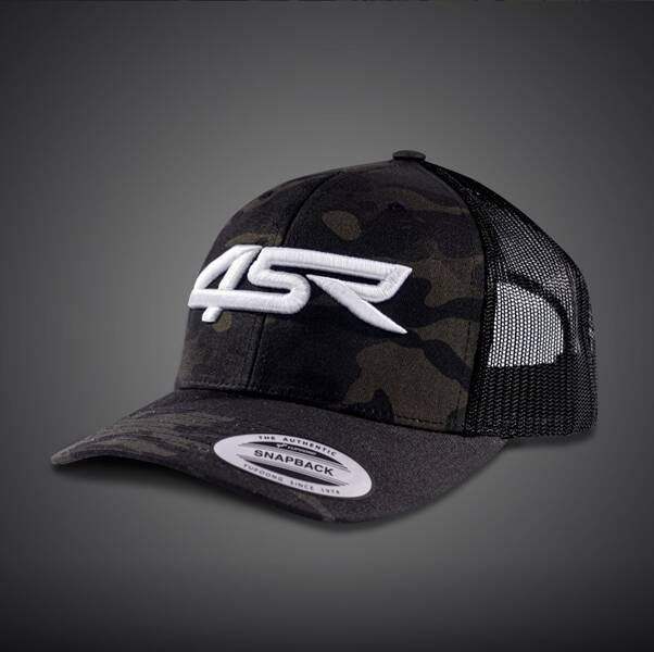 Czapeczka Multicam Black z wyszywanym 3D logiem 4SR i z zagiętym daszkiem.