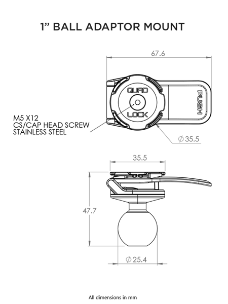 Połącz Quad Lock® z istniejącym mocowaniem RAM motocykla za pomocą adaptera kulowego Quad Lock® 1".