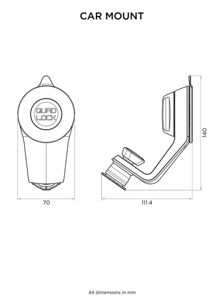 Odpowiedni do użytku ze wszystkimi etui Quad Lock® i uniwersalnymi adapterami, podstawa z przyssawką do szyby/deski rozdzielczej Quad Lock® jest jednym z najmocniejszych i najbardziej stabilnych uchwytów samochodowych na rynku.