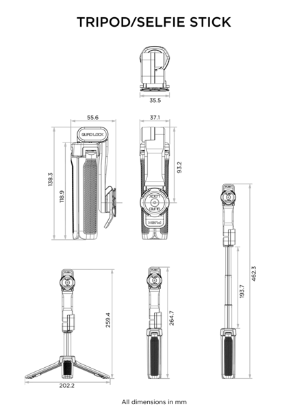 Tripod/Selfie Stick składa się do kompaktowego rozmiaru, który z łatwością mieści się w dłoni. Tripod/Selfie Stick można spakować do dużej kieszeni lub torby, aby zawsze być gotowym do uchwycenia chwili.