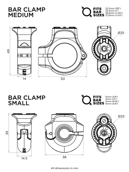 Pewnie zamontuj uchwyt na poprzeczce kierownicy albo innej rurce za pomocą jednej z naszych obejm.