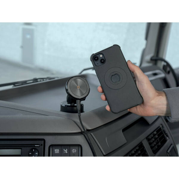 - Wyjątkowo mocna przyssawka samoprzylepna zapewnia optymalną przyczepność na szybach przednich i gładkich deskach rozdzielczych (nie jest kompatybilna z niegładkimi lub zbyt porowatymi powierzchniami).