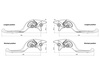 The brake lever kit includes both the front and rear brake lever. Both levers are Adjustable Plus: in addition to the lever-knob distance control system, positioned above for greater accessibility, they also have a sliding system that allows the lever to be adjusted in length. Furthermore, the kit includes two technopolymer inserts to be used to eliminate the gap created when the lever is at its maximum extension (up to 20 mm), thus preventing glove wear.