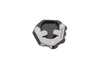 Atrakcyjna nakładka na nóżkę boczną, która przez zwiększenie powierzchni styku z gruntem, zapobiega zapadaniu się motocykla na nierównym jak i miękkim podłożu. Wykonana jest z wytrzymałego stopu aluminium anodowanego na kolor srebrny lub czarny. Kształt j
