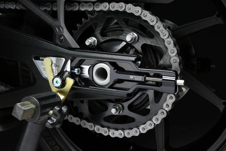 Wykonany z Ergalu obrabianego maszynowo z litego materiału przy użyciu technologii CNC, napinacz łańcucha Bonamici Racing jest solidny i skuteczny, z zastosowaniem łożysk, aby całkowicie wyeliminować tarcie i po raz pierwszy z regulowanym systemem mikrometrycznym. Istnieje możliwość dostosowania wewnętrznej części w różnych kolorach, zewnętrzna część jest dostępna tylko w kolorze czarnym.