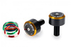 Ilustracja poglądowa. Fotografia prezentuje wygląd końcówek od strony zewnętrznej. Konkretne modele mogą się różnić mocowaniem (długość, rozmiar śruby, sposób wkręcania w kierownicę) - zawsze jest ono odpowiednie do motocykla.