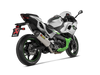 Rozwój z naciskiem na estetykę, dźwięk i redukcję masy doprowadził do powstania tego nowo zaprojektowanego tłumika tytanowego z odciskaną powierzchnią, aby zwiększyć wytrzymałość i trwałość. Oferuje głęboki dźwięk i oszczędność masy o 42,2% (1,8 kg) w porównaniu ze standardowym systemem seryjnym. Końcówka z włókna węglowego i osłona termiczna dopełniają wygląd, a rura łącząca ze stali nierdzewnej i wewnętrzna struktura tłumika dopełniają system. Podczas fazy rozwoju inżynierowie Akrapovič skupili się na reakcji przepustnicy, a wydajność została zwiększona dzięki zwiększeniu mocy o 0,8 kW (1,1 KM) przy 7900 obr./min i wzrostowi momentu obrotowego o 1,0 Nm przy 8000 obr./min w porównaniu ze standardowym wydechem seryjnym i przetestowanym na hamowni Akrapovič. Spełnia certyfikat homologacji typu EC/ECE - Euro5+, nowe rozporządzenie od 2024 r. Poprzednie rozporządzenie, Euro5, obowiązywało do 31 grudnia 2023 r. Instalacja typu plug-and-play oznacza, że nie jest wymagane ponowne mapowanie.
