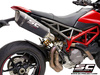 Tłumik SC1-R został stworzony i opracowany w oparciu o doświadczenie działu wyścigowego SC-Project w najważniejszych Światowych Zawodach . Wygląd z zdecydowanymi liniami wzbogaci Twojego Ducati Hypermotard 950, czyniąc go wyjątkowym i ekskluzywnym. Rura wylotowa uzyskana metodą hydroformowania oraz zaślepka z włókna węglowego o romboidalnym asymetrycznym kształcie sprawiają, że tłumik SC1-R jest niepowtarzalny . Lekki korpus zewnętrzny jest dostępny w wersji karbonowej . Ozdobą tłumika SC1-R są spawy metodą TIG , materiał dźwiękochłonny odporny na bardzo wysokie temperatury oraz tuleje wkładkowe wykonane metodą obróbki CNC . W wersji z karbonowym korpusem dział badawczo-rozwojowy SC-Project chciał, aby SC1-R był bardziej wyścigowy, umieszczając logo SC-Project na tłumiku, podobnie jak w wersjach naszych tłumików używanych w zawodach . W zestawie znajduje się rura łącząca.
