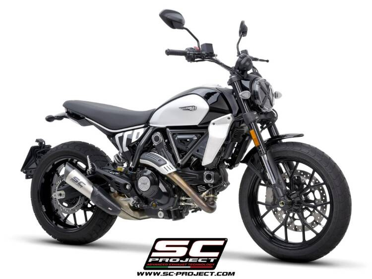 Po prostu idealne połączenie elegancji i sportowego designu : stożkowy kształt korpusu w połączeniu z istotnymi liniami i elegancką zaślepką z włókna węglowego sprawiają, że tłumik S1 jest punktem odniesienia pod względem estetyki i emocji dźwiękowych . Absolutnie najwyższej jakości wykończenie zewnętrznej tulei z ultralekkiego tytanu , spawy TIG wykonane ręcznie, dokładność kształtu zaślepki z włókna węglowego , to czysta radość dla wyglądu. Kolejne niewiarygodne przeżycie pojawia się natychmiast po naciśnięciu przycisku start w Twoim Ducati Scrambler 800 : mocny i głęboki dźwięk wydechu S1 będzie całkowicie niezapomniany.