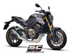 SC1-S , wywodzący się z kultowego tłumika SC1. Nowy SC1-S został opracowany przez dział badawczo-rozwojowy dla Twojej Hondy CB650R . Krótki, kompaktowy i nowoczesny dla tych, którzy preferują minimalistyczne kształty. Nowa zaślepka Twill z włókna węglowego o zdecydowanym i mocnym charakterze dobrze dopasowuje się do kształtów Hondy CB650R . Metalowa część sekcji wyjściowej została zaprojektowana tak, aby lepiej komponowała się ze sportowym designem karbonowej zaślepki. Tłumik posiada homologację Euro 5 . Część zewnętrzna jest dostarczana w wersji Carbon lub Titanium .