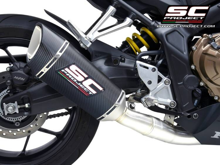 Tłumik SC1-R został stworzony i opracowany w oparciu o doświadczenie działu wyścigowego SC-Project w najważniejszych Światowych Zawodach . Wygląd o zdecydowanych liniach wzbogaci Twoją Hondę CBR650R , czyniąc ją wyjątkową i ekskluzywną. Rura wylotowa uzyskana metodą hydroformowania oraz zaślepka z włókna węglowego o romboidalnym asymetrycznym kształcie czynią tłumik SC1-R niepowtarzalnym . Lekki korpus zewnętrzny jest dostępny zarówno w wersji tytanowej , jak i węglowej . Ozdobą tłumika SC1-R są spawy metodą TIG , materiał dźwiękochłonny odporny na bardzo wysokie temperatury oraz tuleje wkładkowe wykonane metodą obróbki CNC . W wersji z korpusem Titanium dział badawczo -rozwojowy SC-Project chciał uczynić SC1-R bardziej eleganckim poprzez wypalenie logo laserem, bez zniekształcania wyglądu, natomiast w wersji Carbon na tłumiku zastosowano blaszkę z Logo jak w wersjach naszych tłumików stosowanych w Zawodach .