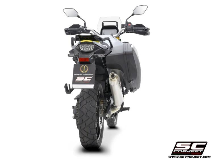 Produkt jest całkowicie typu plug and play i jest kompatybilny z oryginalnymi kuframi bocznymi i centralną stopką . Tłumik Rally Raid jest wyposażony w matową osłonę termiczną z włókna węglowego i ekskluzywną aluminiową płytkę z logo SC-Project , dokładnie tak samo jak układy wydechowe SC-Project Reparto Corse.
