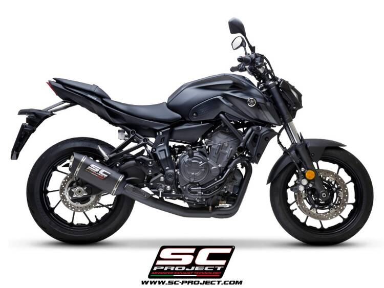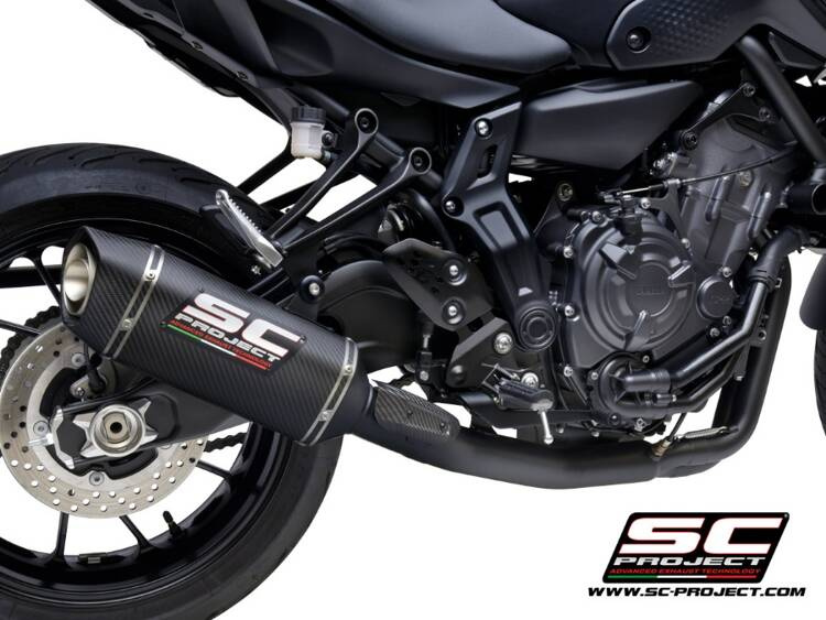 Mocny i głęboki dźwięk uzyskano dzięki zastosowaniu tłumika SC1-S wykonanego z włókna węglowego , z nitowanym logo SC-Project, wytrzymałego, lekkiego i zgodnego z duchem tego modelu motocykla.