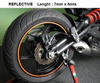 Długość taśmy: 6m szerokość: 7mm. (wystarczający by okleić dwa koła 17’’ z obu stron)