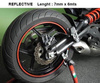 Długość taśmy: 6m szerokość: 7mm. (wystarczający by okleić dwa koła 17’’ z obu stron)