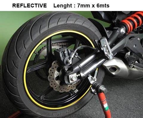 Długość taśmy: 6m szerokość: 7mm. (wystarczający by okleić dwa koła 17’’ z obu stron)