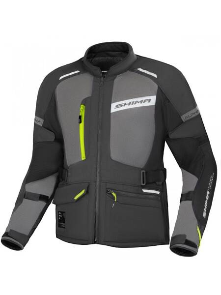 Turystyczna kurtka motocyklowa SHIMA ALPHA to niezastąpiony towarzysz każdej motocyklowej wyprawy. Zbudowana z trzech warstw – ocieplacza, przewiewnej kurtki właściwej i wodoodpornej membrany zewnętrznej – oferuje niezrównany komfort we wszystkich warunkach pogodowych. Dzięki swojej uniwersalności, doskonale sprawdza się zarówno w bardzo ciepłych warunkach (używając tylko warstwy mesh) aż po chłodne i deszczowe dni (używając ocieplacz, warstwę mesh oraz wodo- i wiatroszczelną kurtkę membranową zakładaną na wierzch). Użyte w kurtce materiały zewnętrzne zapewniają wysoką odporność na uszkodzenia i rozdarcia. W zestawie znajdują się protektory AirForce na plecy, łokcie i ramiona, wszystkie poziomu 2, które zapewniają maksymalną ochronę podczas jazdy. Elastyczny i wygodny ocieplacz, wyposażony w wiatroodporne właściwości, może być noszony jako osobna warstwa. Zewnętrzna membrana wodoodporna o parametrach 10 000 mm słupa wody z wlotami wentylacyjnymi i regulacją dopasowania zapewnia zabezpieczenie w czasie deszczu. Dodatkowe panele meshowe oraz strechowe gwarantują doskonałą wentylację i swobodę ruchów. Dzięki regulacjom w pasie i na rękawach, kurtkę można łatwo dopasować do sylwetki. Kurtka motocyklowa ALPHA dostępna jest w szerokiej gamie rozmiarów od XS do 4XL i trzech wersjach kolorystycznych - czarnej z czerwienią, szarej z niebieskim i szarej z fluo. Ze spodniami o tej samej nazwie stworzy kompletny zestaw turystyczny na każdą podróż.