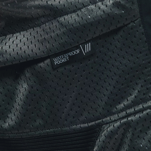 Funkcjonalne detale, takie jak wodoodporna kieszeń wewnętrzna i odblaskowe wstawki, uzupełniają tę kurtkę motocyklową, jedną z najbardziej cenionych w historii Dainese.