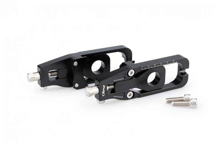 Napinacze PUIG umożliwiają precyzyjne ustawienie i kontrolę napięcia łańcucha. Zaznaczona skala ułatwia kontrolę.