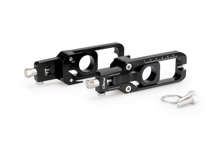 Napinacze PUIG umożliwiają precyzyjne ustawienie i kontrolę napięcia łańcucha. Zaznaczona skala ułatwia kontrolę.