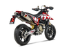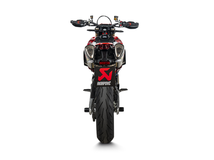 Ten produkt został zaprojektowany tak, aby idealnie integrować się z liniami motocykla. Wykonany jest z wysokiej jakości piaskowanego tytanu na zewnętrzne poszyciu tłumika, rury łączącej ze stali nierdzewnej i zaślepek z włókna węglowego z nadrukami. Konfiguracja podwójnego tłumika — jest wykończona wkładkami dźwiękochłonnymi w kształcie plastra miodu wewnątrz zaślepek, jak widać na wielu motocyklach wyścigowych wspieranych przez Akrapovič, w tym maszynach Grand Prix.