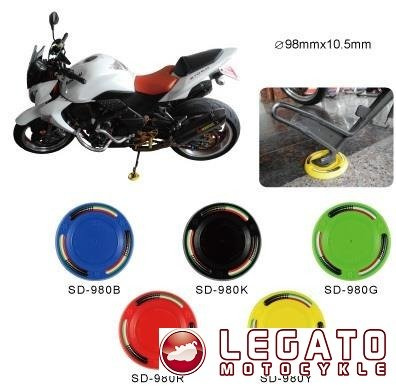 Elegancka podkładka pod nóżkę motocykla zapobiegająca zapadaniu się nóżki na grząskim terenie.
